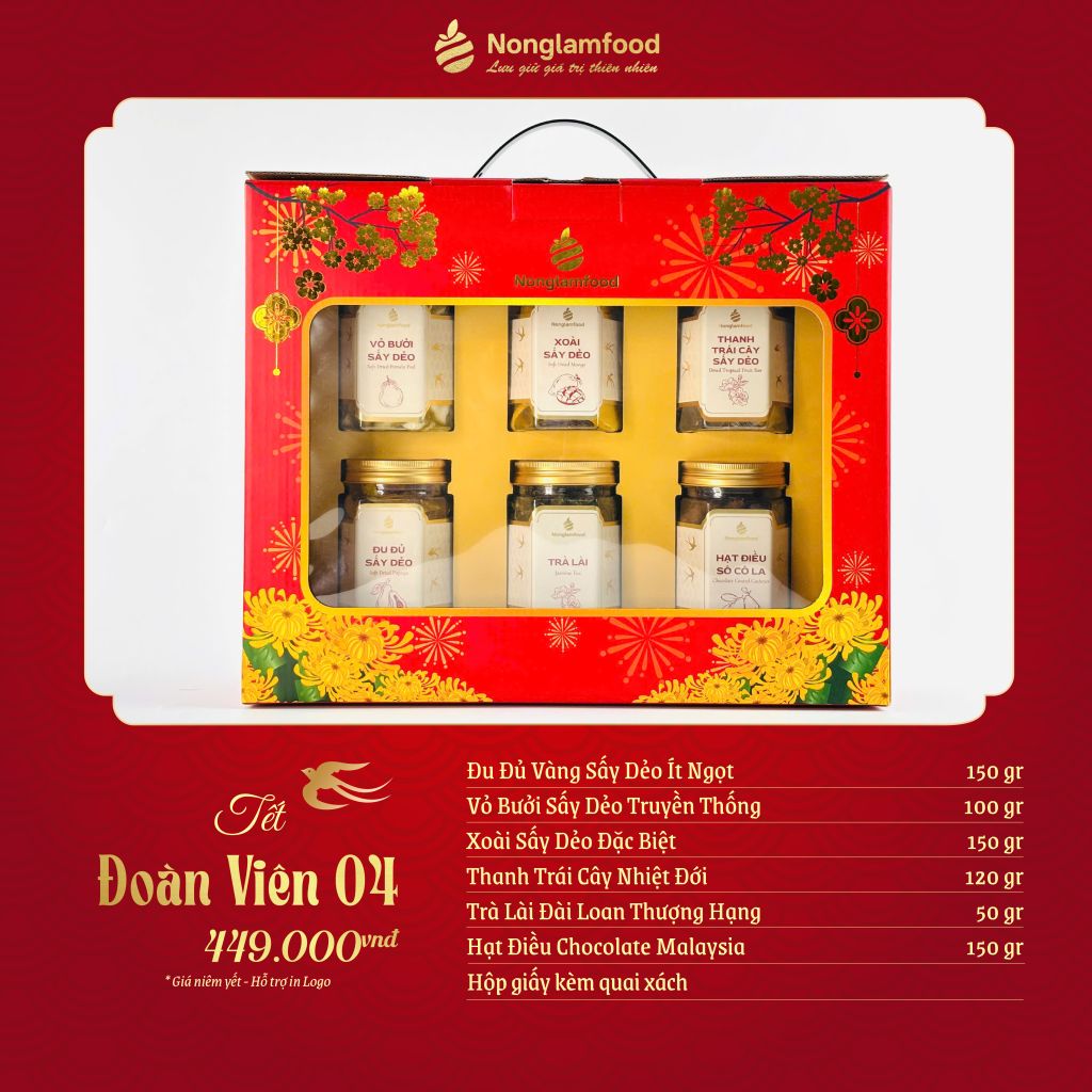 Tết không chỉ là khoảnh khắc chuyển giao của đất trời, mà còn là thời điểm mỗi người tìm về nguồn cội. Những bữa cơm sum họp, câu chuyện năm cũ, năm mới, và cảm giác được trở về “nhà” luôn là món quà vô giá. Thấu hiểu tinh thần ấy, Nonglamfood gửi đến bạn Bộ Quà Tết “Đoàn Viên 4” đi kèm sự tinh tế, quan tâm và lời chúc an lành trong từng hương vị.